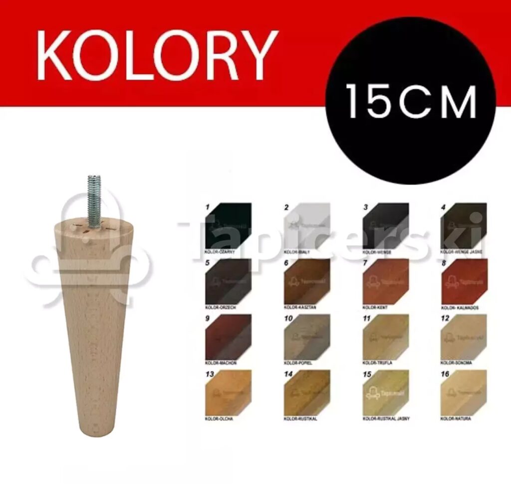 Warto również zwrócić uwagę na wykończenie drewna. Nóżki mogą być surowe (do samodzielnego malowania, bejcowania, lakierowania), lakierowane (bezbarwnie lub na kolor), bejcowane (podkreślające rysunek słojów) lub olejowane (naturalny wygląd, łatwa pielęgnacja). Wykończenie powinno pasować do reszty mebla i stylu wnętrza.