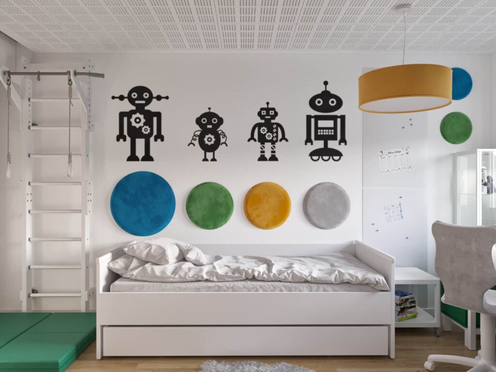 - Bezpieczeństwo (szczególnie dla dzieci): Miękka powierzchnia paneli sprawia, że są one bezpieczniejszym rozwiązaniem na ścianach w miejscach, gdzie bawią się dzieci, redukując ryzyko urazów przy uderzeniu.