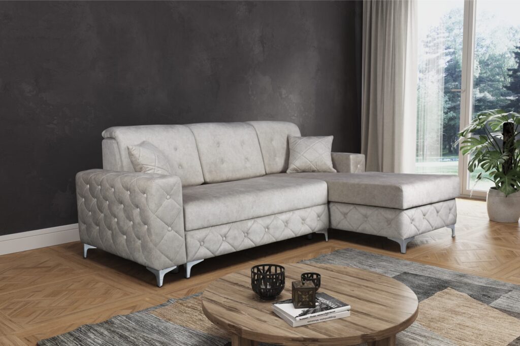 - Sofy narożne: Doskonałe do maksymalnego wykorzystania przestrzeni w rogu pomieszczenia, często z funkcją spania i pojemnikiem na pościel.