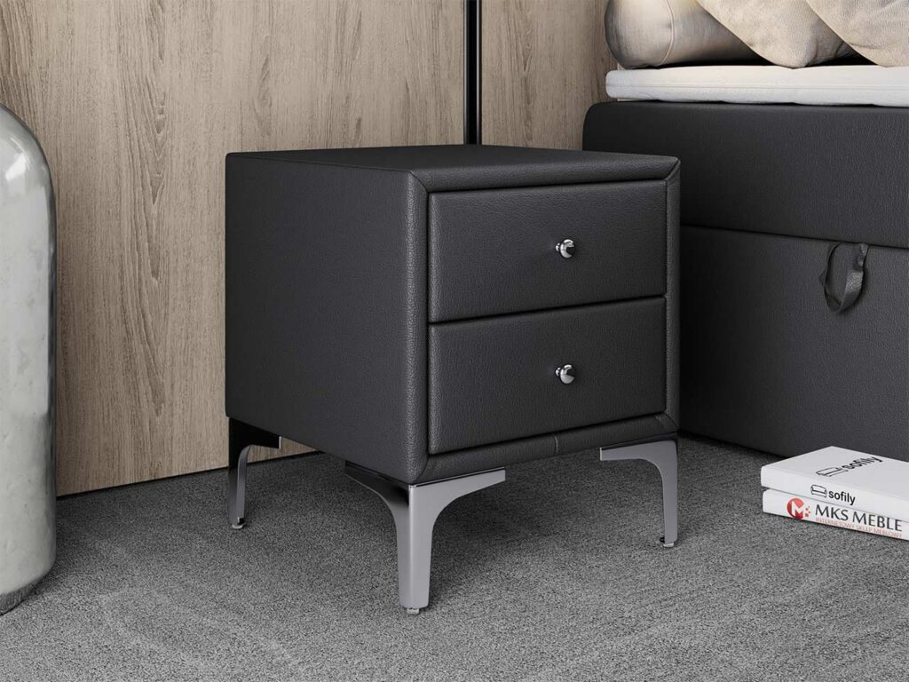 - Sypialnia nowoczesna, minimalistyczna: Łóżko tapicerowane w neutralnym kolorze (szary, beż), o prostej formie. Idealne stoliki nocne to proste bryły bez uchwytów, wykonane z lakierowanej płyty MDF, metalu lub betonu architektonicznego. Kolor może być ten sam co łóżko (harmonia) lub kontrastowy (np. czarny lub biały przy szarym łóżku). Alternatywnie, wisząca półka lub bardzo smukły stolik na metalowych nogach podkreśli lekkość aranżacji.