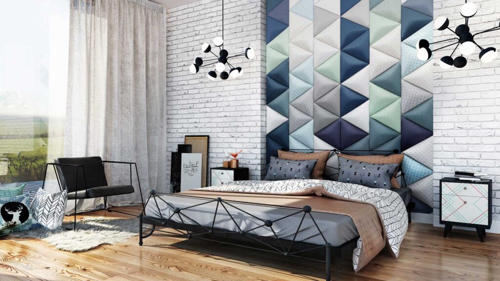 Montaż paneli tapicerowanych jest prosty i szybki. Można je zamontować na kilka sposobów: przykleić klejem montażowym, przykręcić śrubami lub powiesić na specjalnych haczykach.